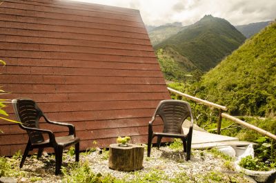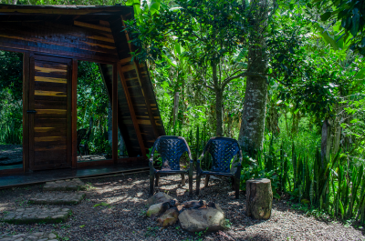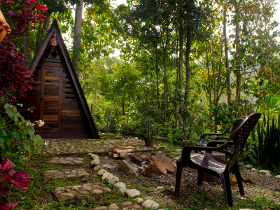 Moldeada por la lluvia, Siu ofrece hermosas vistas a las montañas desde la zona de fogata. Su ventana la ilumina con tonos mágicos y el baño está en el interior.